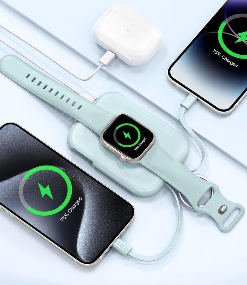 “I never have to worry about running out of power on the go,” said one reviewer who has been using this portable power bank “every day” since they got it. It provides a 5000mAh battery in a compact, lightweight key chain, and it can charge up to four devices simultaneously with its wireless charging face, USB-C port, and two retractable cables (one Lightning and one USB-C).