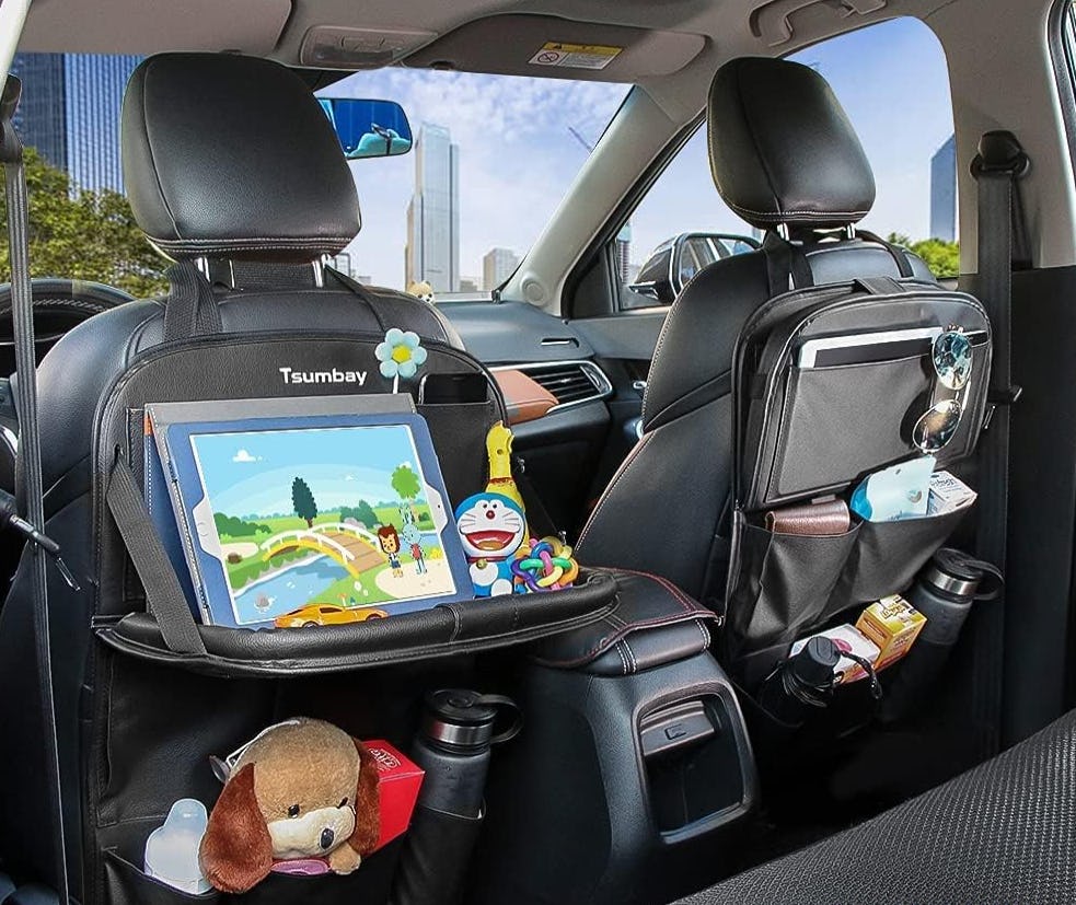 Get your car clutter under control once and for all with this trunk organizer. Using eight roomy pockets that hang from your back-seat headrests, it holds tools, travel supplies, emergency items, sports equipment, shopping bags, and more. “This organizer has truly transformed my car into a clutter-free zone, and I no longer have to worry about things rolling around,” one reviewer wrote.