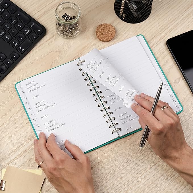 A password notebook that safely records your login info