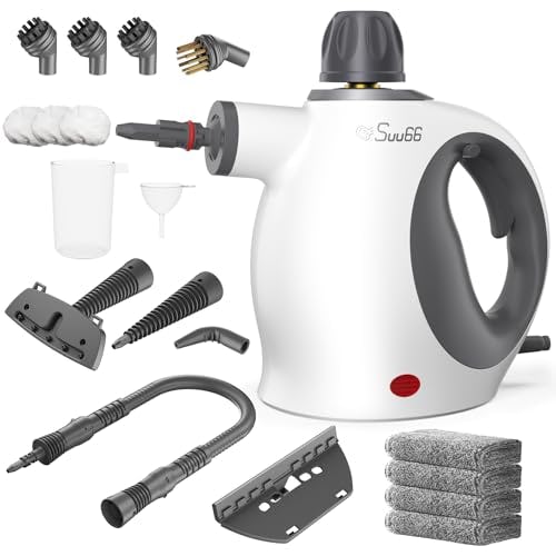 Handheld Steam Cleaner with Safety Lock, 500mL Large Tank & 19PCS Accessories – Multi-Surface Deep Cleaning for Kitchen, Bathroom, Car, Sofa – Removes Stubborn Grime, Sanitizes Surfaces (White)