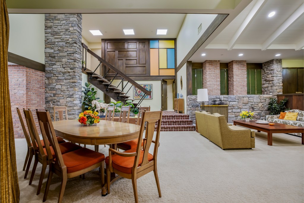 The interior itself already closely resembled the show’s set after HGTV renovated the property for its 2019 series “A Very Brady Renovation,” re-creating the famous floating staircase and other recognizable rooms.
