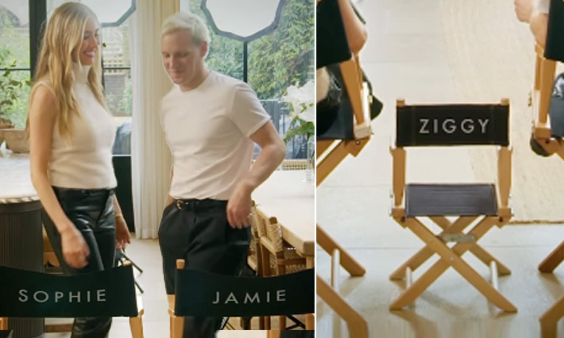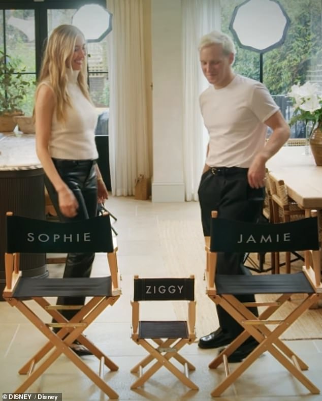 The duo could be seen sitting in directors chairs with their names written on the back, alongside a tiny seat left empty for baby Ziggy.