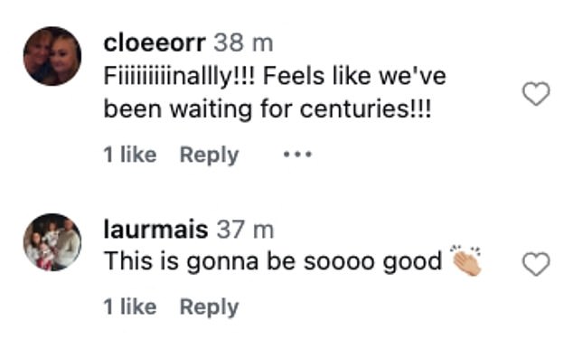 Excited fans gushed: ‘Omgosh love you both and how exciting! Can’t wait!’: ‘Can’t wait x’: ‘AHHHH-YESSSS!!!’: ‘Fiiiiiiiiinallly!!! Feels like we’ve been waiting for centuries!!!’: ‘This is gonna be soooo good’.