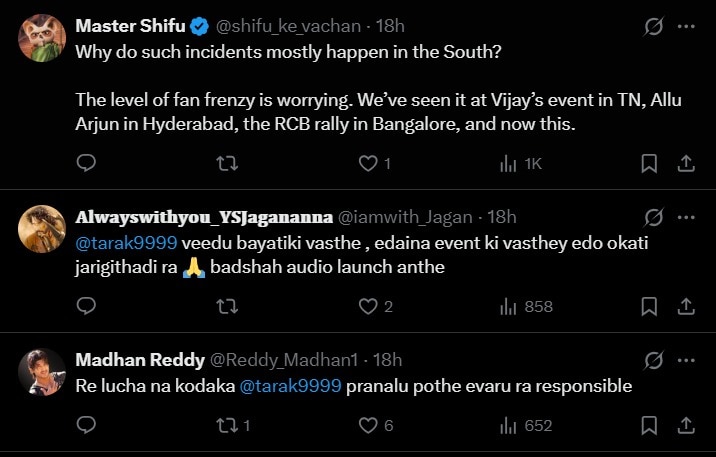 The incident sparked reactions online, with several users expressing concern about recurring crowd trouble at public events. One user wrote, “Why do such incidents mostly happen in the South? The level of fan frenzy is worrying.” Another commented, “This is the reason NTR usually avoids public events, but I don’t know why he came to open the hospital.”