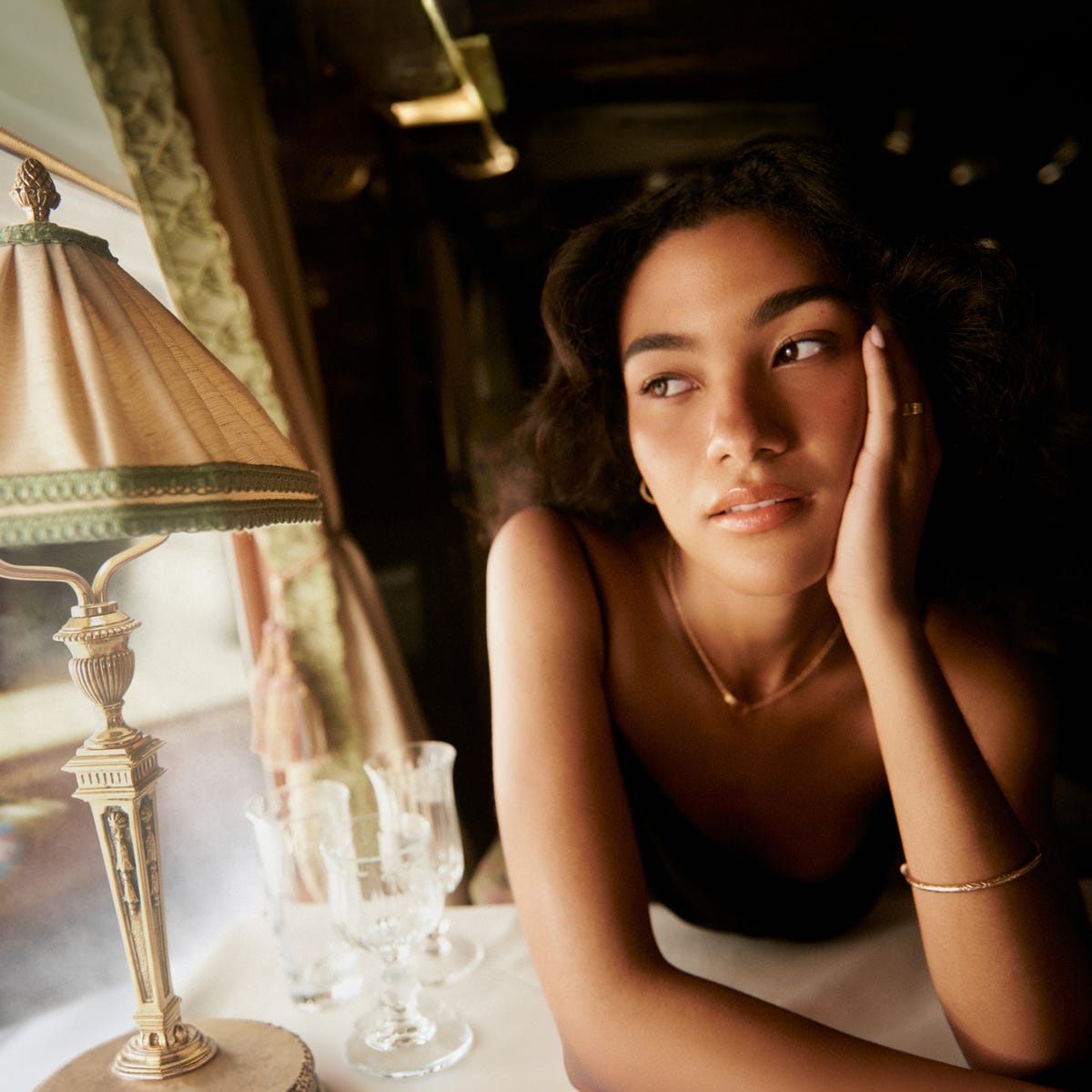 I always love to play music. I know that feels like an obvious thing to do, but that can really set the tone for me. I love romantic soundtracks, maybe French or Italian, kind of ‘60s drama. Let’s really get into the character.