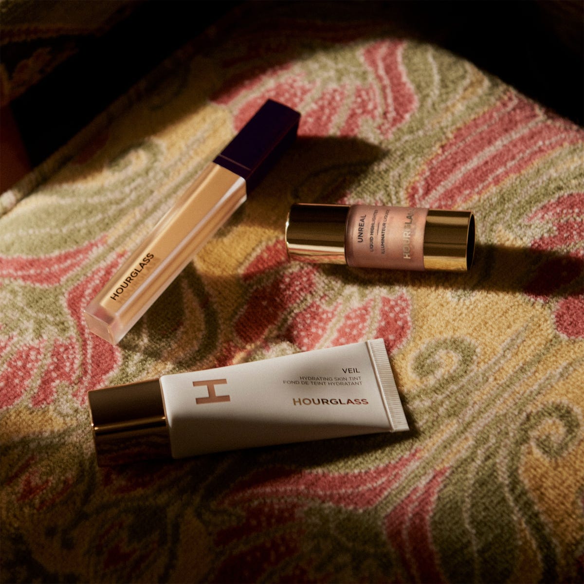 Dean’s role at Hourglass involves curating a series of mini beauty wardrobes—known as The Olivia Edit—based around the products she’s already using. The first one includes Hourglass’s Veil Hydrating Skin Tint, Vanish Airbrush Concealer, and the brand-new Unreal Liquid Highlighter, all of which include skincare ingredients for a bright, even, and bouncy complexion.